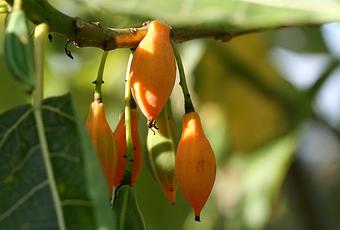 Le fruit est une excellente petite papaye à peau fine et intactile que Susanna Lyle décrit ainsi « fruit orange de 3 à 4 cm de long, très sucré, musqué avec un parfum d’épice » …
