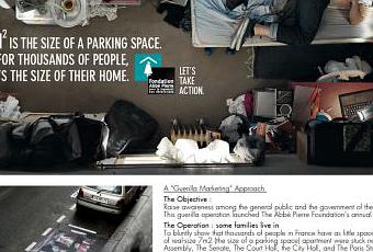 La Fondation Abbé Pierre, avec BBDP Unlimited a lancé une campagne « Hiver 2008″ qui mélange affichage sur des espaces traditionnels et aussi dans la rue. Portant sur le mal logement et ceux qui sont bien trop petits, elle voulait mettre les gens en face de ce que peut représenter 7 ou 12 mètres carrés pour vivre… Réussie !