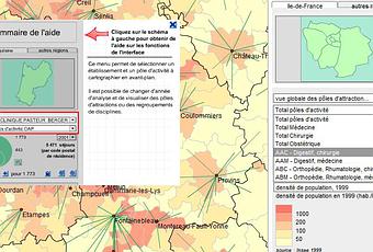 Cet ensemble de cartes interactives, réalisées par l'Agence technique de l'information sur l'hospitalisation (ATIH), actuellement publiées en version 2008 vont être actualisées courant septembre 2010. Remarquable outil pour analyser l'offre de soins, et comprendre les enjeux actuels sur la question.Les cartes étaient jusqu'alors publiées sur le site Parhtage des Agences régionales de l'hospitalisation (ARH), à présent « remplacées » par les agences régionales de santé. D'où la présence des anciens logo « Parhtage » qui seront donc remplacé pour la prochaine mouture par les logo des ARS ; à noter la simplicité d'utilisation de l'outil et l'aide bien conçue qui facilitent l'accès aux données : un must dans le genre.