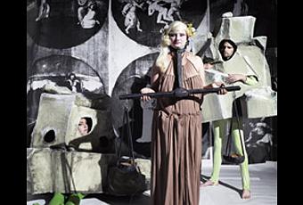 Spartacus Chetwynd cultive une double identité correspondant à ses deux pratiques artistiques : elle signe de son véritable nom, Lali Chetwynd, de petits tableaux mêlant références culturelles populaires et élitistes, tandis que Spartacus produit des performances anachroniques, baroques et surréalistes, aux influences aussi hétéroclites que Giotto, la famille Adams, Boccace ou Star Wars. Son exposition, conçue spécialement pour le festival, témoigne de son univers composite et prolifique à travers des sculptures issues des décors de certaines de ses performances, et d’un mur de vidéos retraçant ses performances autant que ses sources d’inspiration.