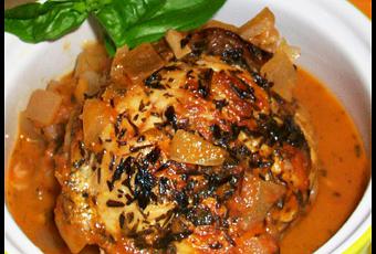 Verser la sauce dans une cocotte (la mienne est une Pyrex, ronde, parfaite pour 2 !).