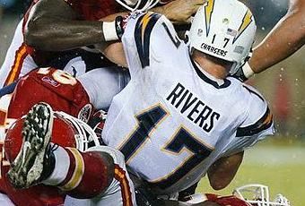 - Course de Ryan Matthews qui se fait arracher le ballon par Derrick Johnson repris par Brandon Carr au 28 de SD qui se rend ensuite jusqu’au 12. L’impact de Romeo Crennel se fait sentir. La D est vraiment plus aggressive.