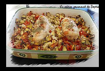 Poser les blancs de poulet sur les légumes (côté peau vers le haut s'il y a la peau).