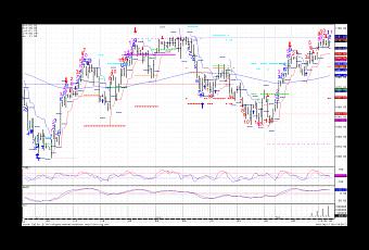 Les raisons pour une correction ne manquent pas. Et le signal parfait n’arrive que très rarement. En revanche, nous surveillons de près le graphique du S&P de 720 minutes. Les décomptes Demark on permis de marquer les deux précédents extrêmes avec une précision impressionnante. Pour le moment le décompte en est à 11 sur un 13 requis pour former le signal.