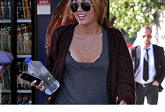 Bonjour tout le monde, Miley Cyrus s'est rendus à une station service de Los Angeles hier matin afin de s'acheter une bouteille d'eau. Elle était accompagné de son amie et productrice Anontina Armato. Coté tenue, Miley portait de nouveau ses chaussures à talons que je n'hadère toujours pas, ainsi qu'une veste façon mamie & son fameux mini short - débardeur ave soutif qui dépasse.