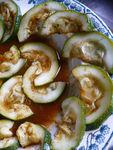 - Couper la courgette en tranches de 1/2 cm ; redécouper chaque rondelle en 2 puis les disposer dans le panier d'une cocotte minute. Fermer et amener à ébullition. Cuire 4 min ; les courgettes doivent être à peine cuites, encore croquantes