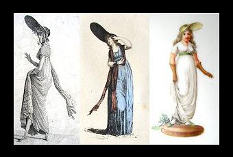 du tout début du XIXe. C'est le temps des merveilleuses. La mode est aux 'chapeaux 'casques' ou 'jockey' ressemblant à ceux que portent les jockeys (le cheval et les courses sont alors