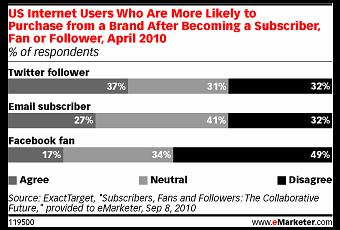 - 37% de followers de marque sont incités à acheter le produit, pour seulement 17% d'un fan FB
