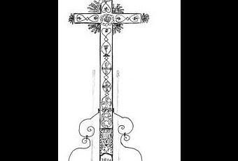 Un peu plus loin, dans le cimetière, où je ne me suis pas permis d'entrer par respect pour les défunts et leur famille, une autre croix,-qui je le précise n'est pas sur une tombe mais place le cimetière sous la protection divine-, tout à fait originale a été l'objet de mes observations. En haut, se tient fièrement un coq et sur le bas elle est orné d'un petit bouquet de fleur.