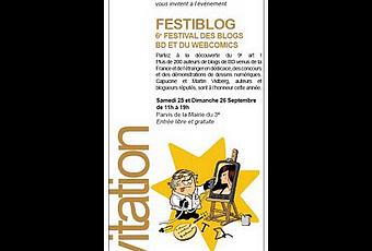 Voici une invitation officielle pour le Festiblog 2010 à Paris adressé par un ami adjoint au maire et et conseiller de Paris. Si Paris n'a pas réussi à imposer un véritable festival de bande dessinée digne de ce nom, le Festiblog est devenu le plus grand festival de BD à Paris avec plus de 200 séances de dédicaces. Le Festival des Blogs BD et du Webcomics se déroule les 25 et 26 septembre 2010 devant l’hôtel de ville de la Mairie du 3e arrondissement de Paris. J'y serai en espérant que nous aurons un aussi beau soleil que l'an passé !Les dédicaces gratuites, sans obligation d’achat et même sur papier libre se déroulent de 11h00 à 19h00 par tranche horaire de 2 à 3 heures. Pour connaître les horaires et les nombreux auteurs prévus, mieux vaut se rendre sur le site de l’événement : www.festival-blogs-bd.com. Après Boulet, Turalo, Poipoi, Kek et David Souillon pour Maliki, le 6e parrain du Festiblog est Martin Vidberg. La marraine du Festiblog 2010 est donc Capucine, à retrouver sur Mouton Benzène Luxe. Parmi les 78 auteurs attendus figurent notamment Bastien Vivès, Boulet, Cha, Sti et Wandrille.