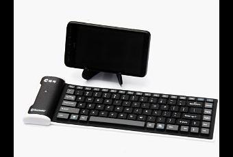 Ce clavier Bluetooth, intègrant une batterie, est entièrement fait de silicone. Il peut être plié, roulé (sans pli) et est étanche (partique dans les bars).