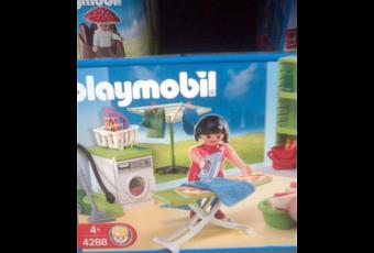 J'ai pris cette photo au taff en début de semaine et je me dis que chez Playmobil ils ont une vision très "caricaturale" de la femme à la maison. Bon en même temps faut habituer les petites filles assez tôt !!!! Ok je sors et je me range sous la canapé(attention lectrice quand tu passeras l'aspirateur ;;) ).