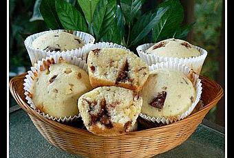 Incorporer les ingrédients secs au premier mélange, en alternant avec le lait. Ajouter les morceaux de chocolat dans la pâte et mêler pour enrober. Verser dans 12 cavités de muffin et cuire environ 20-25 minutes. Vérifier la cuisson à 20 minutes, en insérant un cure-dent au centre.