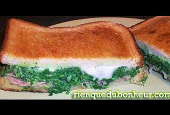 Sur les 2 faces tartinées de basilic, déposer une tranche de jambon blanc, recouvrir d’une belle couche de préparation à la roquette, puis de fines tranches de mozzarella, saupoudrer alors la fleur de sel, puis recouvrir d’une tranche de pain.