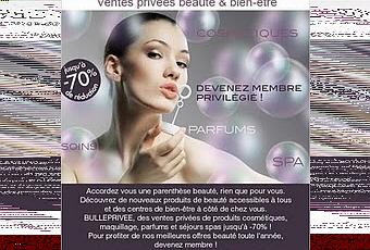Avis à toutes les beautystas : le 15 octobre 2010, www.bulleprivee.com, tout nouveau site de ventes privées de cosmétiques, soins en spas et instituts arrive sur la toile !