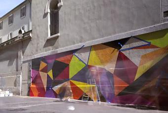 le concept, prendre 3 artistes Matt W Moore, Le Groupuscule, l’artiste électro Monsieur Monsieur, mixer leur talent pour littéralement faire danser les murs.