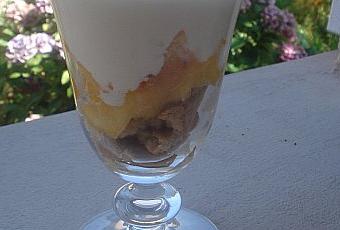 Casser les biscuits en petits morceaux et faites vous verrines : une couche de biscuits, une de fruits et une de crème.