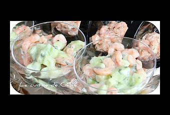 Mélanger le concombre avec la crème, les crevettes, la menthe, sel et poivre
