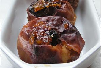 - mettre au centre de chaque pomme un abricot sec et quelques raisins secs