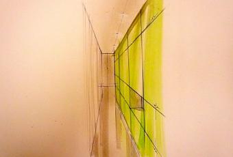 Construction au stylo biq. Mise en couleur au feutre. Blanc en réserve pour la brillance de la laque verte. Pastel sec au coton pour les dégradés. Gouache blanche pour les spots