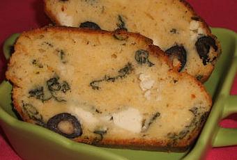 Dans un saladier, mélanger la farine et la levure. Ajouter les oeufs un à un, puis le vin blanc et le beurre. Ajouter enfin la feta émiettée, la menthe ciselée, le fromage râpé et les olives. Verser dans un moule à cake et enfourner pendant 45 minutes.