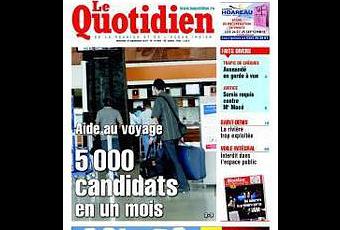 On va passer rapidement sur les deux Une communicantes du JIR, celle du lundi 13 « Selon les médiums Erwan « toujours vivant au RSMA » » et celle du jeudi 16 « Médiums : ce qu’ils valent vraiment ». Pas besoin de disséquer, ça se décrypte et se démonte tout seul. Par contre on va se pencher sur la Une du Quotidien de mercredi, qui annonce : « Aide au voyage : 5000 candidats en un mois ». On n’est pas tout de suite interpellé, surtout que la photo n’a rien de très flashy, juste quelques badauds de dos trainant des bagages, en se dirigeant vers le comptoir d’enregistrement. On suppose qu’ils vont en « voyage ». Et qu’ils font peut-être partie de ceux qui vont se faire « aider ». L’ « Aide au voyage », c’est façon de dire « continuité territoriale », le terme repris à la volée par notre chouchou UMP Robert de la Région, pour désigner son nouveau dispositif de dégraissement du billet d’avion, dont il a amplement fait la pub, son tube de l’été à lui. Depuis sa mise en application le 16 aout dernier, 40 000 chanceux par an (5% de la population réunionnaise) se verront offrir un chèque cadeau de 360 euros par billet d’avion aller-retour métropole (soit en moyenne à peine un tiers du billet) du moment qu’ils remplissent bien les cases de leurs feuilles d’impôts, qu’ils en payent quand même un petit peu et qu’ils ont encore assez de sous pour se payer le reste du billet. C’est pour ça que la suite du titre c’est « 5000 candidats en un mois », justement le 15 septembre, un mois après la mise en application. 5000, c’est un très bon début, ça inaugure un dépassement rapide du quota de 40 000 en un an. Preuve que la pub fonctionne. Oups, j’ai dit « quota ». « Candidats », ça suppose que pour l’instant ils ont juste déposé les dossiers et qu’ils font la queue comme tout le monde. Seuls quelques-uns peut-être ont déjà pu partir. Mais la question est : vont-ils revenir ?