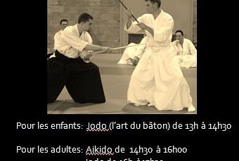 Les adutles pourront pratiquer l'aikido de 14h30 à 16h00 puis le jodo de 16h à 17h30.
