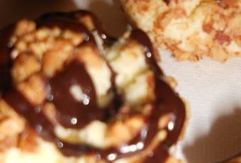 Voila des petits biscuit enrobés de cacahuettes grossièrement concassés et décorés avec du chocolat pour donner l’allure d’une abeille, pour moi j’ai fait deux forme une en forme d’abeille et l’autre tout simplement ronde avec les mêmes stries au chocolat vous pouvez aussi les arroser de miel au lieu de mettre le chocolat au dessus c’est encore plus bon.