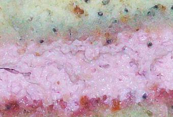 THE Gâteau White & Pink, pâte au sésame et au pavot mi-vanille, mi-citron, fourrage aux framboises, ganache chocolat noir aromatisé au sirop de Cranberry