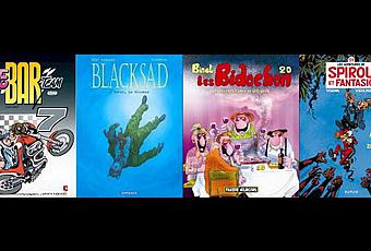 Côté flux, le T.4 du thriller financier Dantès de Pierre Boisserie, Philippe Guillaume et Érik Juszezak est le seul titre à quitter déjà le classement. A l'inverse, quatre autres titres font leur apparition. D'abord un album sarcastique et politique sur Sarkozy et ses femmes chez Drugstore. L'album a fait le buzz (ramdam pour les puristes !) à la télévision, la radio et dans les news magazines. Il est vrai que le scénariste est un journaliste bien en vue de France Inter et que l'album surfe sur toutes les rumeurs autour du chef de l'État au cours de ces dernière années. Moebius fait aussi son entrée avec le grand retour d'Arzak, un album somptueux coédité par Glénat en grand format qui ne peut ravir les fans absolus de l'un des maîtres vivants de la BD. Entré plus doucement, le nouveau Joann Sfar sur Chagall en Russie arrive en 11e position. Enfin le T.19 de la Jeunesse de Blueberry de François Corteggiani et Michel Blanc-Dumont, seconde partie d'un diptyque, entre de justesse et ne devrait pas s'arrêter là compte tenu du niveau des ventes de l'épisode précédent. Au total le classement BD franco-belge gagne 4 titres en net.Au classement des éditeurs, Média Participation (Dargaud, Dupuis..) écrase ses concurrents avec 5 titres, juste devant le Groupe Glénat (Glénat, Vents d'Ouest, Drugstore) avec trois titres. Drugstore, Dupuis, Fluide Glacial, Gallimard, Glénat-Moebius Productions, Jungle, Mad fabrik et Vents d'Ouest inscrivent chacun un titre contre quatre pour Dargaud.