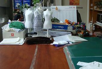 Des patrons, l'étape suivante est la découpe des pièces. S'agissant de maille, donc de matière fluide, la découpe est risquée car le tissu pourrait glisser.