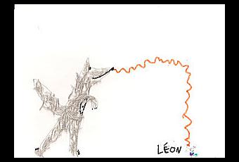 Celui de Lucie (6 ans 3/4 !!!) qui a collé de la laine sur son loup pour un effet plus réaliste ! Je ne sais pas si c'est sa langue, mais elle est bien pendue !!