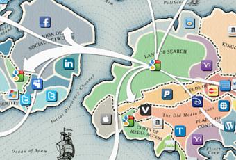 Les acteurs Web 2.0 ne se cantonnent pas au secteur qu’ils maîtrisent, dans lequel ils connaissent le succès ou dans lequel ils ont démarré. Ils ont d’autres ambitions et voici une représentation (par le Web2 Summit) qui n’est pas sans rappeler le jeu Risk (dixit Loic) qui montre la situation actuelle :