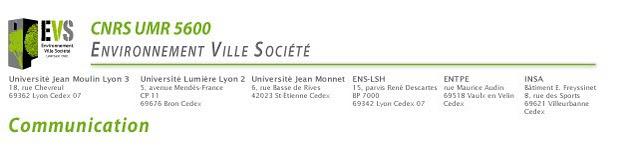 L'université Jean Moulin Lyon 3 et l'UMR 5600 "Environnement Ville et Société" organisent une table-ronde sur le thème : "Questions de géographie politique : un dialogue franco-brésilien", le vendredi 24 septembre 2010, à partir de 14h à l'amphithéâtre Huvelin de l'université Jean Moulin Lyon 3 (15 quai Claude Bernard, 7ème arrondissement, Lyon)