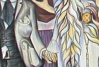 Vous connaissez un peu maintenant Frida Kahlo, le méchant Diego, La Catrina. Et bien, voilà les trois réunis dans la célèbre fresque peinte par Rivera dans les années fin 1940 soulignant les 400 ans d’histoire du Mexique : Le Rêve d’un dimanche après midi dans le Parc de l’Alameda.