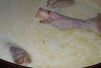 Tout ça pour vous dire que cette recette de souris d'agneaux, pour celles et ceux qui lisent encore (je sais je m'égare !) se fait toute seule, il suffit de mettre 6 souris (même si vous n'êtes que 4 faites en 6, vous les congèlerez et aurez un plat sympa pour un jour de tête à tête !) à dorer dans de l'huile, puis de les caler dans une grosse cocotte, de couvrir avec un litre de lait de coco et un litre d'eau, de fermer la cocotte et de la mettre au four (préchauffé th° 170°) pour 2 heures 30. Ce qui m'a laissé le temps d'aller chercher les loulous, en faisant 20 kms de détour ! De faire le clafoutis aux pêches (ici) pour le dessert, et de mettre la table, ouf.