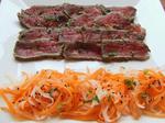 Le lendemain, j'ai coupé la viande finement en tranches. Elle était crue à l'intérieur mais parfumée jusqu'à coeur par la marinade. C'était vraiment un régal!