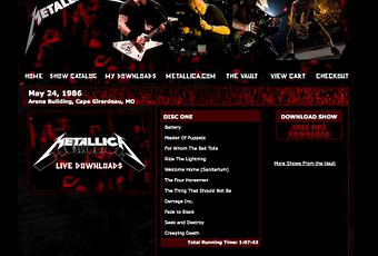 Depuis l'ouverture du site, Metallica (comprenez Lars) a essayé de canaliser le flux important de bootlegs sur le groupe en proposant des enregistrements de meilleure qualité à ses fans ainsi que des notes très utiles sur la setlist. Je rappelle donc que si la majorité des concerts sont payants, certains restent en téléchargement gratuit, en échange d'un simple login et pass. On retrouve entre autre ces concerts :