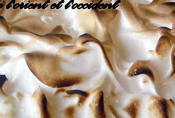 Préparer la meringue.Dans un récipient ,mettre les blanc d'oeufs avec le jus de citron,monter les en neige bien ferme,ajouter le sucre et battre d'avantage jusqu'à ce que la meringue devienne brillante et qu'elle adhère bien au fouet.
