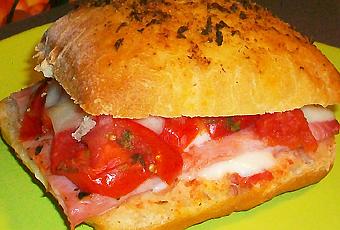 Ciabatta/ mozzarella/jambon/ tomates/mozzarella/ciabatta