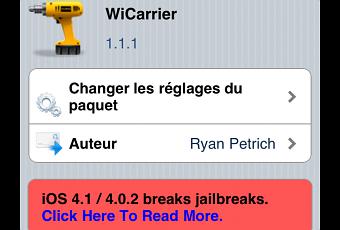WiCarrier est un Tweak qui vous permet de remplacer le nom de votre réseau par le nom de votre WiFi lorsque vous êtes connecté sur celui-ci.