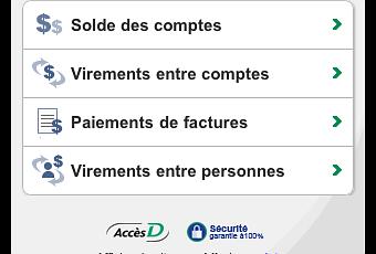 Desjardins Mobile Services (gratuit) permet d’effectuer des opérations de base (paiements de facture, virements, lecture du solde).