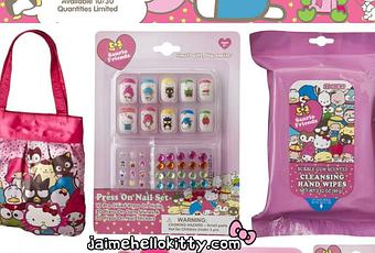L'enseigne Target qui vend depuis plus de 10 ans divers produits Hello kitty (à bas prix ) aux USA , se prépare à fêter les 50 ans de Sanrio en créant une ligne d'articles "Sanrio Friends" qui va des lingettes , du set d'écriture aux faux ongles (!) en passant par les vêtements ou encore le sac! D'autres articles en éditions limitées cette fois-ci : un t.shirt, une lunch box , un bonnet/écharpe , deux modèles de coques pour iPhone et un pull , sortiront à diverses dates en Octobre et en Novembre. Les plus chanceux pourront voir la boutique caravane spécialement conçue pour cet événement , qui traversera le pays à partir du 23 Octobre ! (toutes les dates ci-dessous).