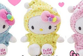 Voici une nouvelle collection de peluches : "Pajama" qui se décline en trois coloris tout doux : bleu , jaune et rose ! Elles portent un pyjama imprimé d'Hello kitty , d'étoiles et de noeuds. Existe en deux tailles : petit et moyen ! (Sanrio USA)