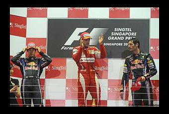 Tout-F1 présente le Tout-In et le Tout-Out du week-end à Singapour. Tout-F1 a choisit cinq pilotes ou écuries qui ont marqué le week-end de course tant en bien qu'en mal... 1 Le pilote Ferrari revient en force en signant deux victoires consécutives. Le double champion du monde se rapproche doucement mais sûrement de son troisième sacre. Il réalise encore une fois un had trick impressionnant, pole, meilleur tour et victoire une fois de plus ! Décidément, l’espagnol semble imbattable, ces derniers temps… 2 Le pilote Mercedes est toujours dans les bons coups. Le petit blondinet était dans le rythme des plus grands à Singapour et récolte les points de la 5e place. Nico Rosberg s’est drôlement bien défendu en piste et conserve son avantage sur son coéquipier, septuple champion du monde. 3 Victime d’un souci mécanique, le malheureux Felipe Massa a été obligé de prendre le départ depuis la 24e position. Il tente une stratégie agressive après un très bon départ et termine sa course dans le Top 8. Une très belle remontée de 16 positions, ce qui n’est pas négligeable sur un circuit où il est impossible de doubler ! 4 Tout simplement magique ! Robert Kubica a réalisé quelques tours en fin de séance réellement fantastiques. Le polonais ravitaille une dernière fois et se lance dans une remontée effrénée pour atteindre la 7e position. Un Robert complètement fou qui dépasse en folie les hommes devant lui. Magnifique ! 5 Le jeune allemand qui s’est pris une pénalité pour changement de boite est parti 17e sur la grille et termine 10e. Sa remontée fut impressionnante même si le pilote allemand est resté coincé derrière Adrian Sutil pendant la majeure partie de la course. En tous cas, le pilote Williams n’a commis aucune erreur !