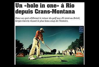 Dans un spot célébrant le retour du golf aux JO 2016 au Brésil, Sergio Garcia réussit le plus beau coup de l’histoire. La vidéo met en scène la star espagnole du golf Sergio Garcia, ambassadeur de l’horloger en question, au départ du tee sur le terrain de golf de Crans-Montana. La progression de la balle est suivie à travers toute l'Europe et au-dessus de l'océan, tandis que les spectateurs stupéfaits lèvent les yeux pour la voir voler au-dessus de leur tête. La balle arrive en Amérique du Sud et atterrit sur un terrain de golf à Rio de Janeiro, au Brésil, où elle roule dans la coupe. A voir sur 20minutes.ch