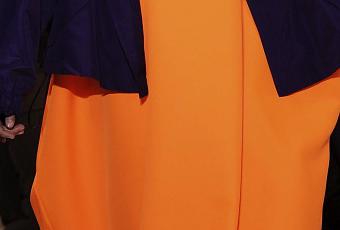 Je veux cette robe orange fluo, parfaite avec un gilet bleu marine et un rouge à lèvres rose...