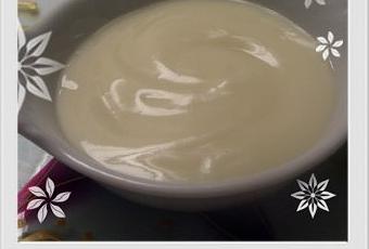 Verser en filet la phase huileuse fondue sur la phase aqueuse sans cesser de mélanger au fouet jusqu'au refroidissement complet.