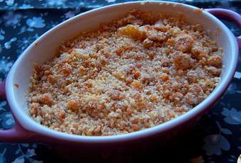 Préparer la pâte à crumble en mélangeant tous les ingrédients, bien sabler la pâte et réserver.