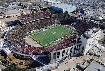 (21)Texas Vs (8)Oklahoma – Samedi – 15h30 – ABC: C’est la 105ième fois depuis 1900 que les deux équipes s’affrontent dans le match du Red River Rivalry. Année après année on nous habitue à un excellent match de football. Ce qu’il y a de bien avec cette rencontre, c’est qu’il a souvent un impact sur le classement de la Big-XXII et même sur le classement national. De plus, le match est joué dans le mythique et splendide Cotton Bowl (voir photo). Le match sera disputé à cette endroit jusqu’en 2015, par la suite, il sera intéressant de voir s’il sera transféré dans le stade de Jerry Jones (Cowboys Stadium).